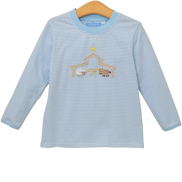 Celebrate the season with the Nativity Shirt from Trotter Street Kids, featuring a charming applique design that captures the spirit of the holiday. Crafted for comfort and style, this shirt offers a timeless look perfect for festive occasions or everyday wear during the holiday season. Its quality fabric ensures softness and durability, making it a reliable choice for active children. The detailed applique adds a handcrafted touch, turning this shirt into a meaningful piece that highlights the story of Christmas with elegance and warmth.