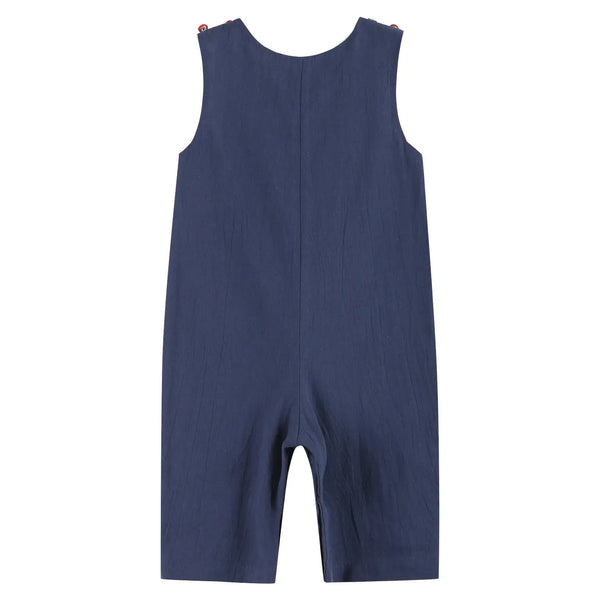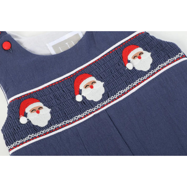 Make him the most festive Christmas cutie with these Navy Blue Santa Smocked Overalls! Boasting an oh-so-adorable embroidered Santa, buttons on the shoulder for adjustable sizing, and snaps at the crotch to ensure diaper changes are a breeze. Give your little man the gift of merry-making memories this Christmas!