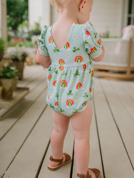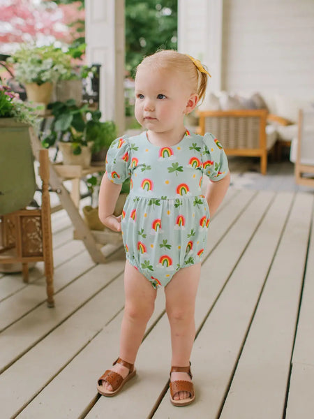 The Puff Baby Bubble romper features charming short puffy sleeves accented with a thick flat stretchy elastic band detail for a cute and comfortable fit. Relaxed-fit bottoms offer plenty of room for play, and a convenient 3-snap closure makes diaper changes easy.