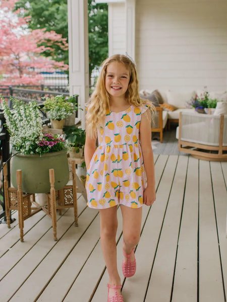 Inspired by adventurous girls on the move, this tank top romper combines playful style with everyday comfort. Featuring a sweet ruffled detail on the sleeve, relaxed mid-length shorts with side seam pockets, and crafted from our signature extra soft and stretchy cotton fabric, it’s perfect for active days filled with fun and exploration.