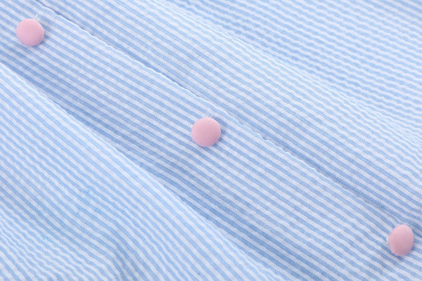 Classic charm meets springtime sweetness in our Blue Bunnies Seersucker Yoke Dress. Made from soft, breathable cotton, this darling dress features a crisp white collar for a timeless look. Along the hem, three adorable appliqué bunnies add a playful touch—perfect for Easter, spring photos, or any sunny day. Let her make sweet memories in this darling outfit!