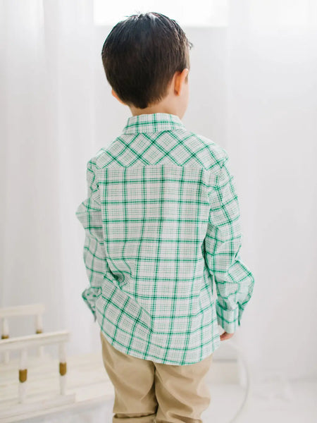 A timeless essential for any young wardrobe, our Boys Button Down Shirt features a clean, classic silhouette with a smooth poplin weave, spread collar, and long sleeves for a polished look that works for both casual and dressy occasions.