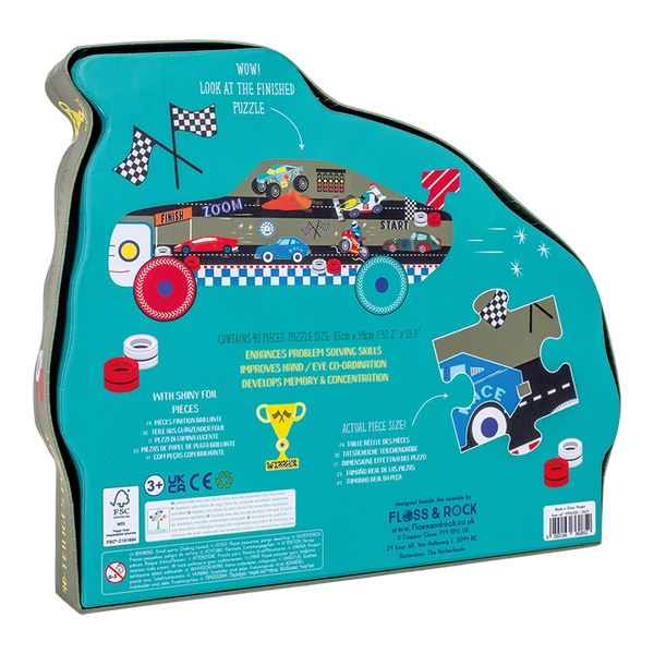On your marks, get set, GO! Speed into playtime with this cool Cars 40 piece puzzle. Inside the reusable shaped box, there’s 40 fantastic chunky puzzle pieces that build a brilliant car shaped puzzle complete with a race track, finish line, racing cars, motorbikes and a monster truck too! Perfect for all car enthusiasts, this 40 piece jigsaw enhances problem solving skills, improves hand/eye coordination and develops memory and coordination.