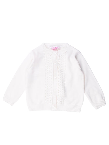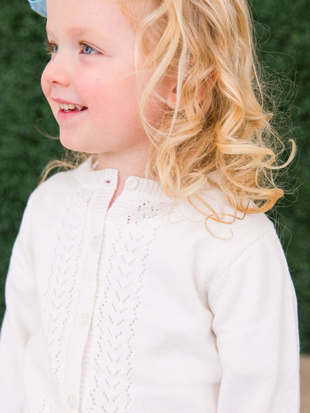 This lightweight pointelle knit cardigan is great for layering over short sleeve tops and dresses in transitional weather.