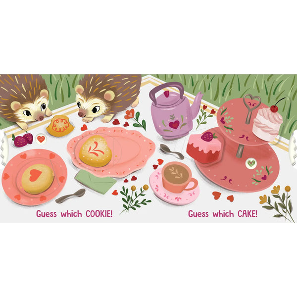 An interactive wheel hides brightly colored hearts across a variety of sweet scenes. After the heart is hidden, it's time to guess where it is. Lift the flap for the reveal in this game-in-a-book, then play again (and again) for hours of heartfelt fun!