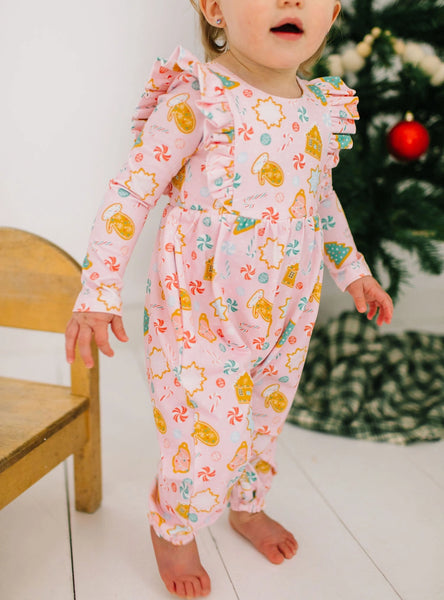 Our Mabel Bubble baby romper is crafted from our signature extra soft and stretchy fabric, designed to keep your little one comfy and cute all day long. Featuring an adorable ruffle that runs over the shoulders and highlights the charming scoop back detail, this romper pairs a snug bodysuit with cozy pants. Practical snap closures around the inseam make diaper changes quick and easy, while elastic ankle bands ensure a perfect fit.